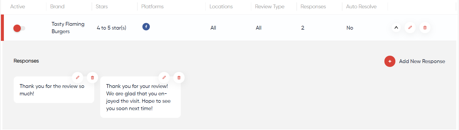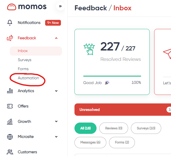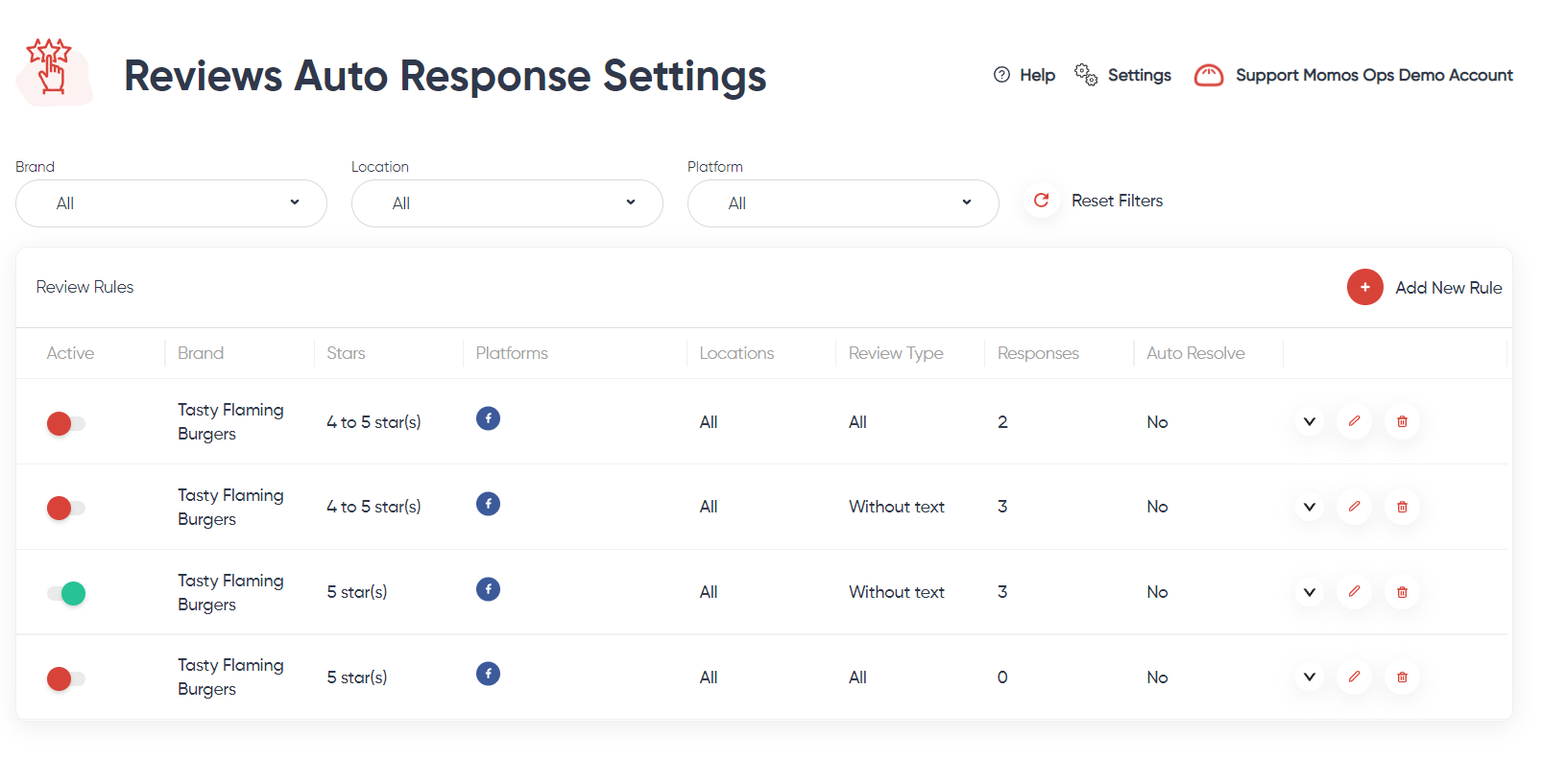 Every review deserves a timely response! If you are too busy to reply to all reviews, you may set up auto-responses for Facebook and Google reviews as well as Momos Surveys and Forms with pre-determined rules.