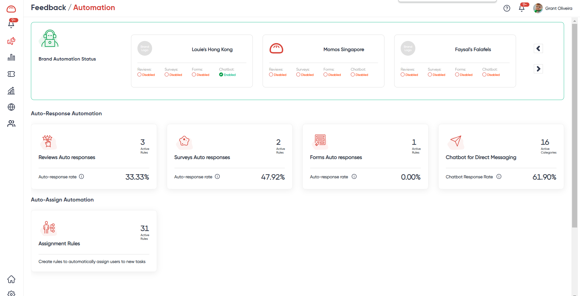 After navigating to the "Automation" page, choose which Feedback channel's auto response you would like to configure.