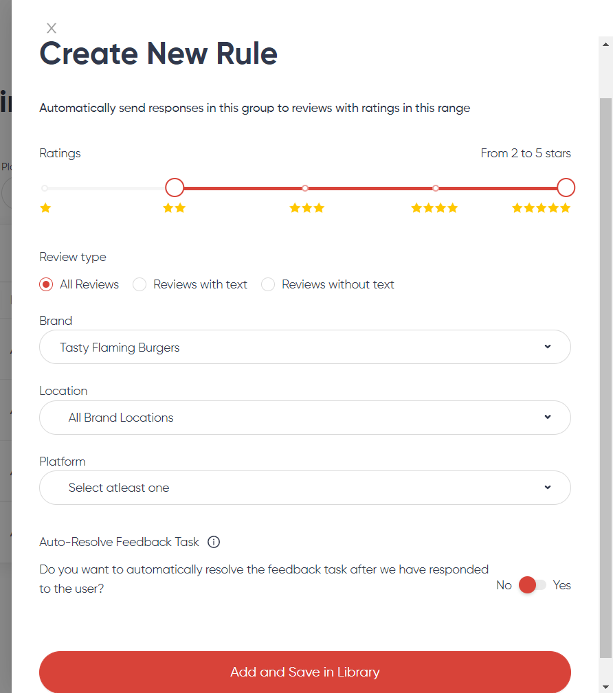 Lastly, click "Add and Save to Library" to create your auto response rule.