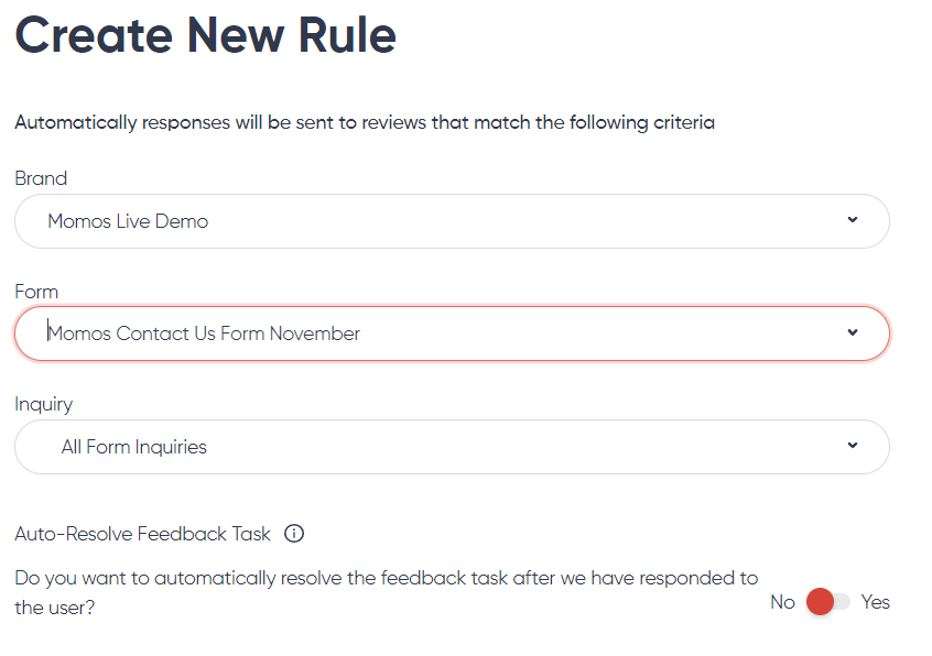 Lastly, you can choose whether the auto response will also automatically mark the feedback as "Resolved"