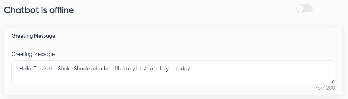 Turning Chatbot on or off is but a simple click! Click on the toggle located to the right of the "Chatbot is offline/online" text.
