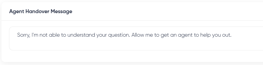 The "Agent Handover Message" is the reply given in the case that the customer asks a question the Chatbot is not programmed to answer, (e.g. How crowded is it at the moment?)