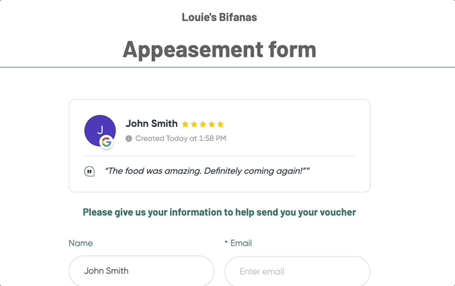 - Template Type (Single Page Contact Us Form/Google Review Winback Form)