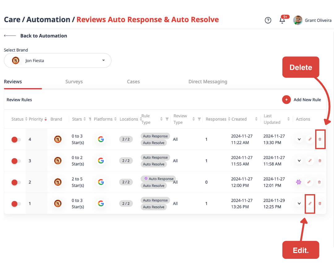 Rules can be updated or removed anytime. On the far right, click the pencil icon to update or the bin icon to delete it.