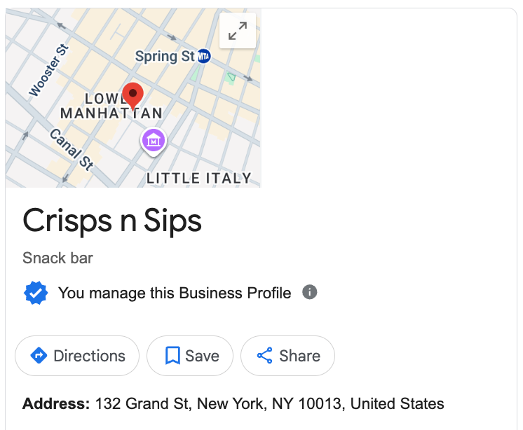 A verified Google Business Profile displays a blue checkmark badge and the text "You manage this Business Profile" beneath the business name, showing that Google has confirmed the profile as a genuine representation of the business.