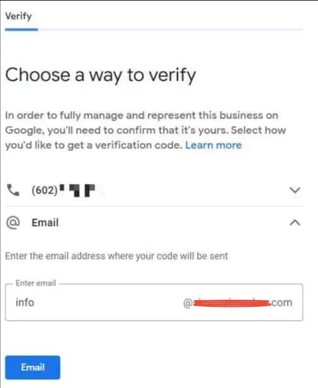 Since every business is unique, Google automatically decides the available verification methods based on your business details. In some cases, more than one method may be required.